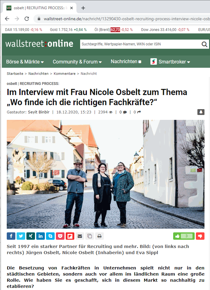 Interview mit Nicole Osbelt auf wallstreet-online.de